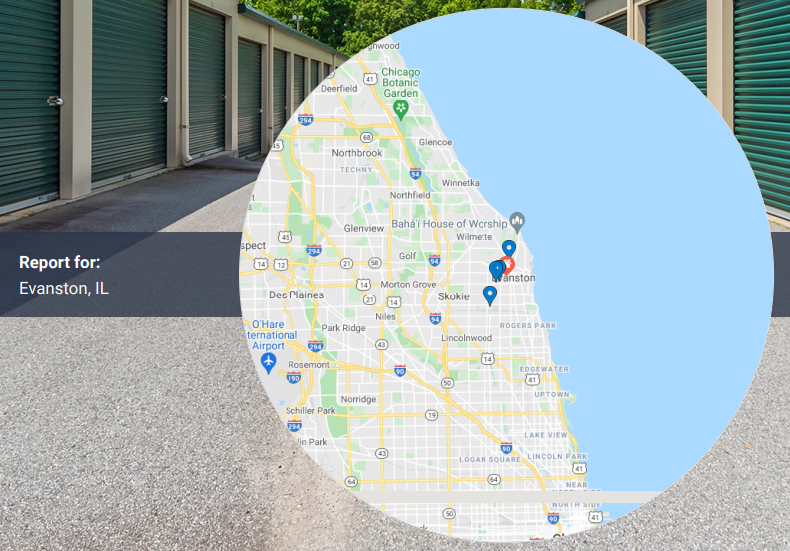 Using the Market Discovery Data Tool from StorTrack Explorer, we were able to review data on Evanston, a city in Cook County, IL. Rates have been trending upwards by nearly 23% over the past year and current supply is 3.1 square feet per capita. To view additional metrics, visit the link labeled “Click Here to View Market Information” or go to StorTrack.com to purchase historical data.