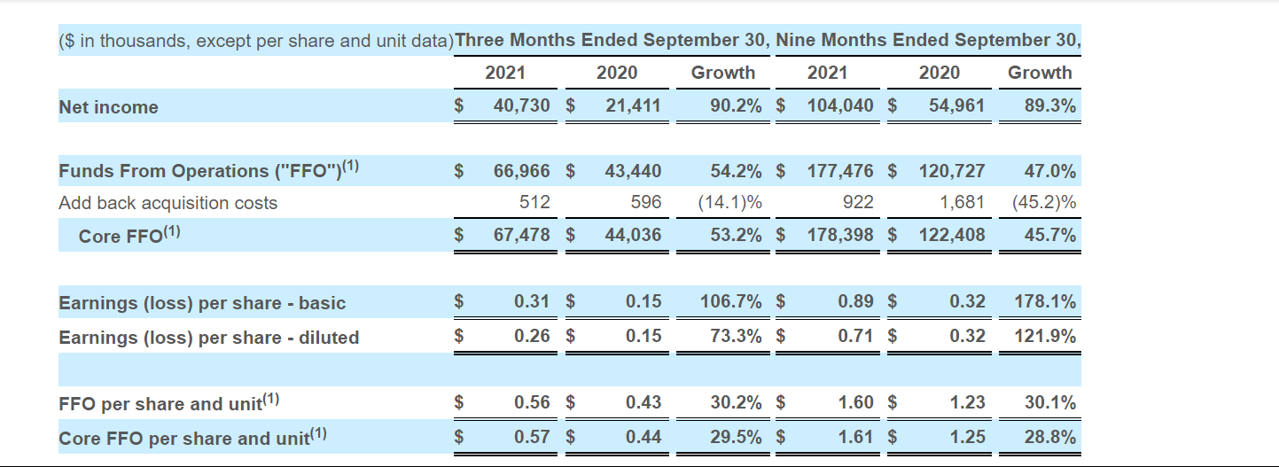National Storage Affiliates Trust Reports Third Quarter 2021 Results