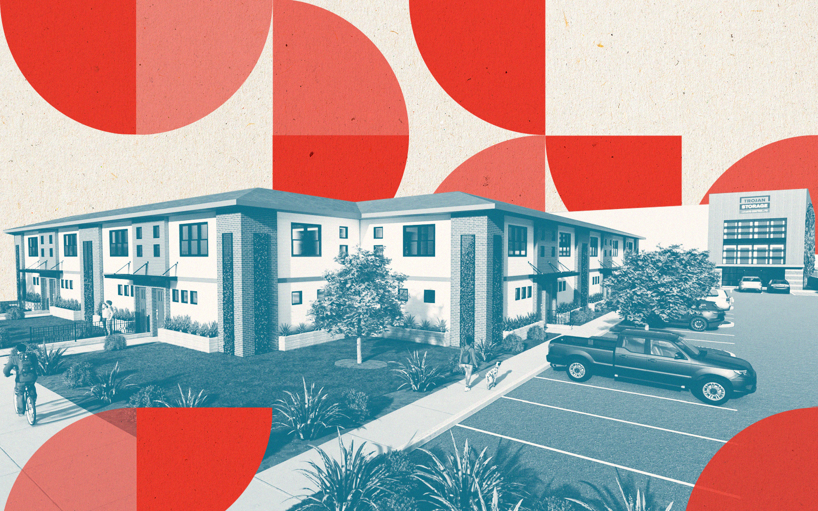 Trojan Storage has pitched plans for mixed-use residential and self-storage before. In 2021, it filed an application to build a more than 163,000 -square-foot storage compound along with 25 apartment units at 13260 Maclay Street in Sylmar. Jordan Architects, headquartered in San Clemente, served as the architect for Trojan Storage’s North Hollywood and Sylmar projects, which are both in the San Fernando Valley.